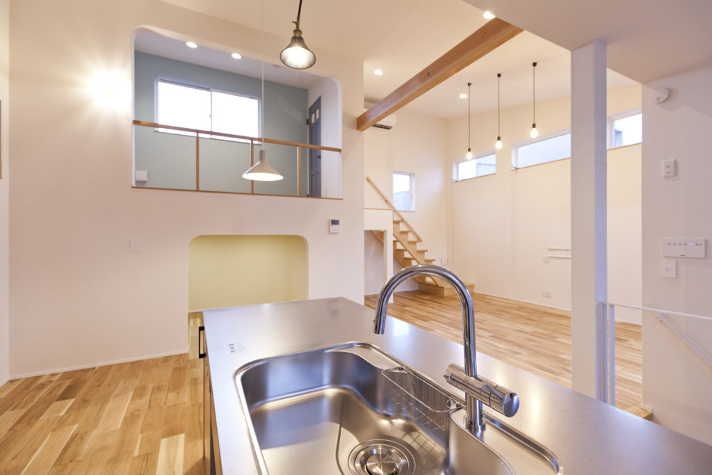たとえば、キッチンに立つとリビングやスキップフロアが見渡せるようにすると、自然と会話が生まれます。