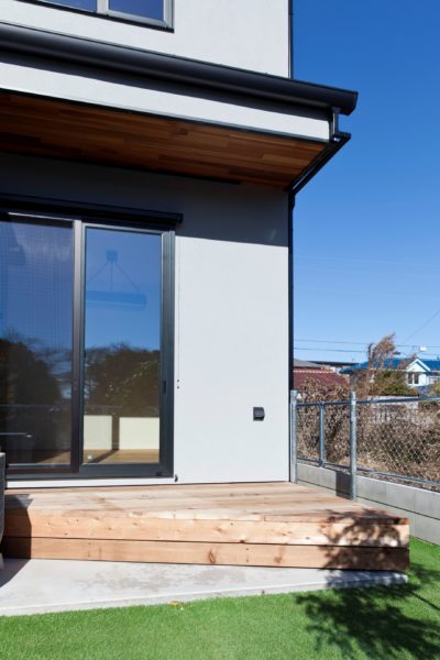 リビングから段差なくつながる広々ウッドデッキは、お子さまの遊び場やBBQスペースに最適です。ローソファを置いてくつろいだり、屋外用のダイニングセットを置いて食事を楽しんだりと、室内と一体化した使い方が可能です。