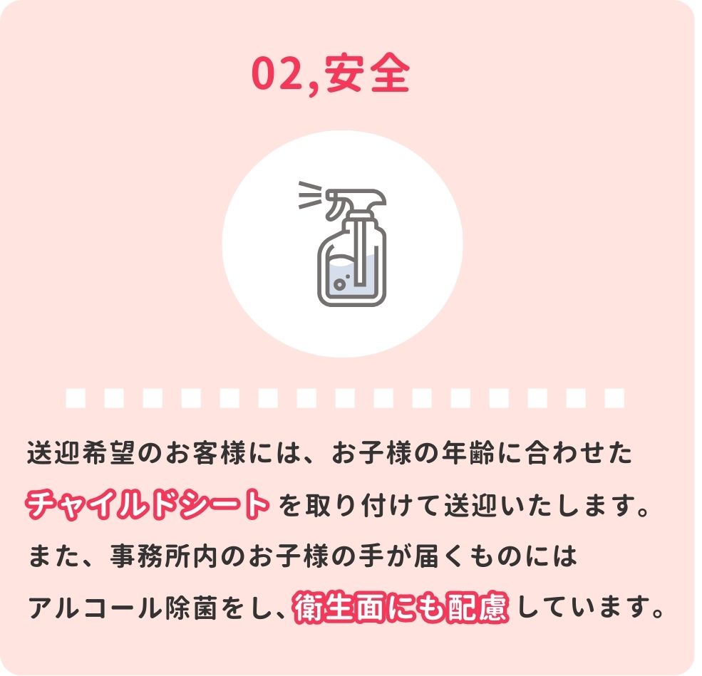 安心してお越しいただけるように、以下のサービスを実施しております。