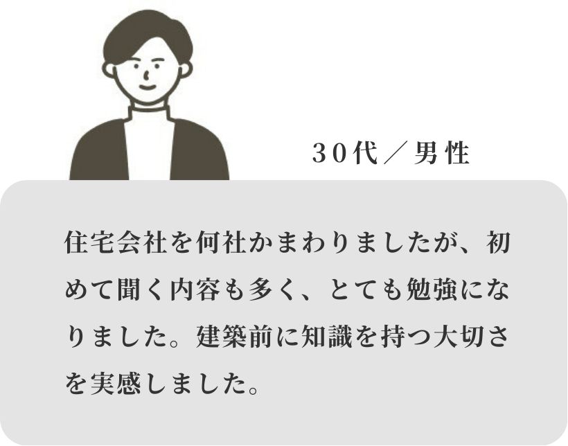 勉強会では費用の仕組みと考え方を整理しながらお伝えしますので、数字に振り回されず、根拠を持って前に進めるようになります。