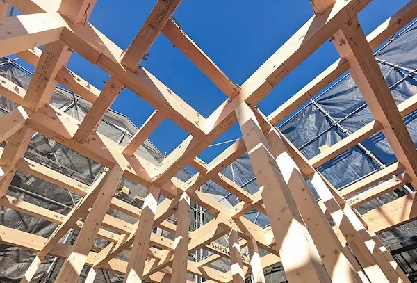 柱や梁を組み立て、家の骨組みが完成。建物の形が見える段階となり、ご家族様とともに上棟をお祝いいたします。