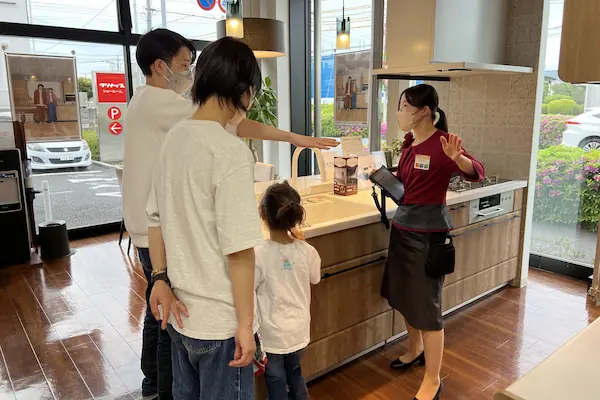 キッチンや床材、設備などを実際に見て触れながら、デザインや機能性、素材やカラーを確認。理想の住空間をイメージしていただきます。